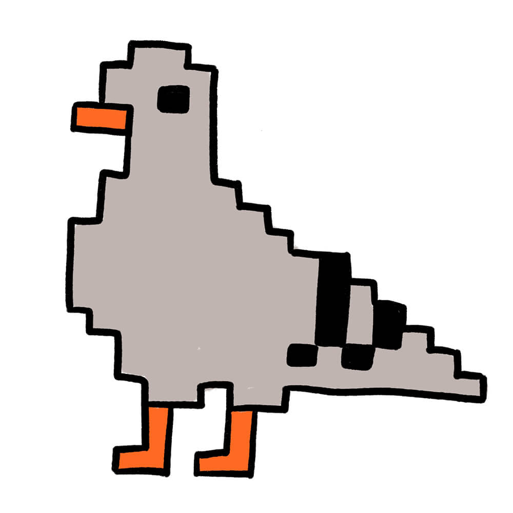 Typ Gołąb to wyjątkowy przedstawiciel swojego gatunku, który nie dość, że zbudowany jest z pikseli, to jeszcze doczekał się własnej linii produktów! Nasz Gołąb poświęcał swoje życie na szukanie chleba, aż pewnego dnia dowiedział się, że… Gołębie nie powinny jeść chleba! Cały jego świat legł w gruzach, a jeden z jego przyjaciół po zjedzeniu chleba stał się duchem i zaczął świecić w ciemności. Teraz Typ Gołąb ląduje na koszulkach, kubkach i wielu innych produktach, i tylko czasem jeszcze szuka chleba (nie do końca wierząc w jego szkodliwość). Kliknij tutaj, żeby obejrzeć wszystkie gołębiowe produkty.