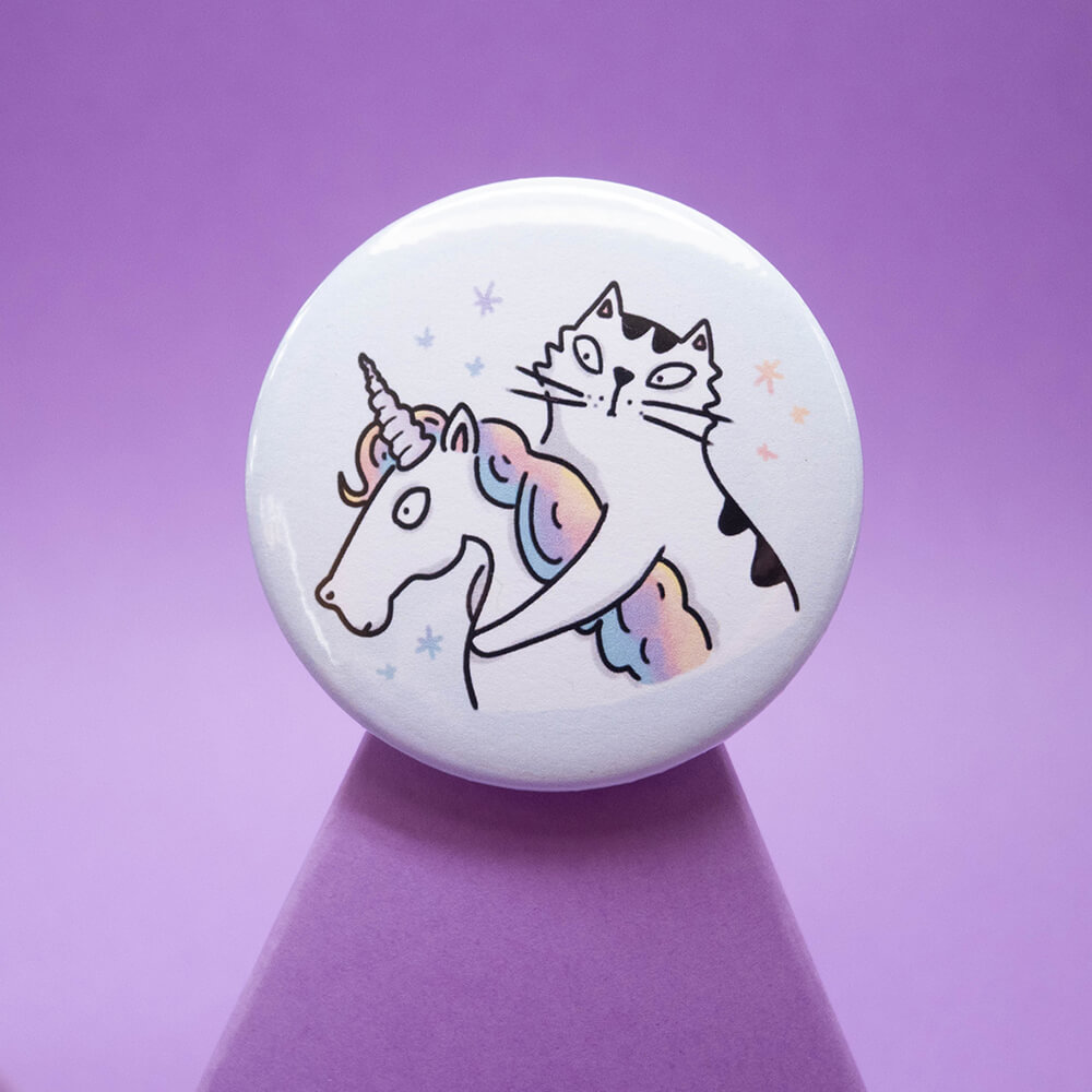 Duża przypinka Pan Kot Szczepan na jednorożcu