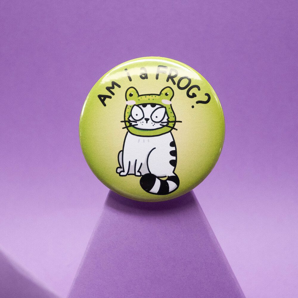 Przypinka z Panem Kotem Szczepanem o średnicy 58 mm.