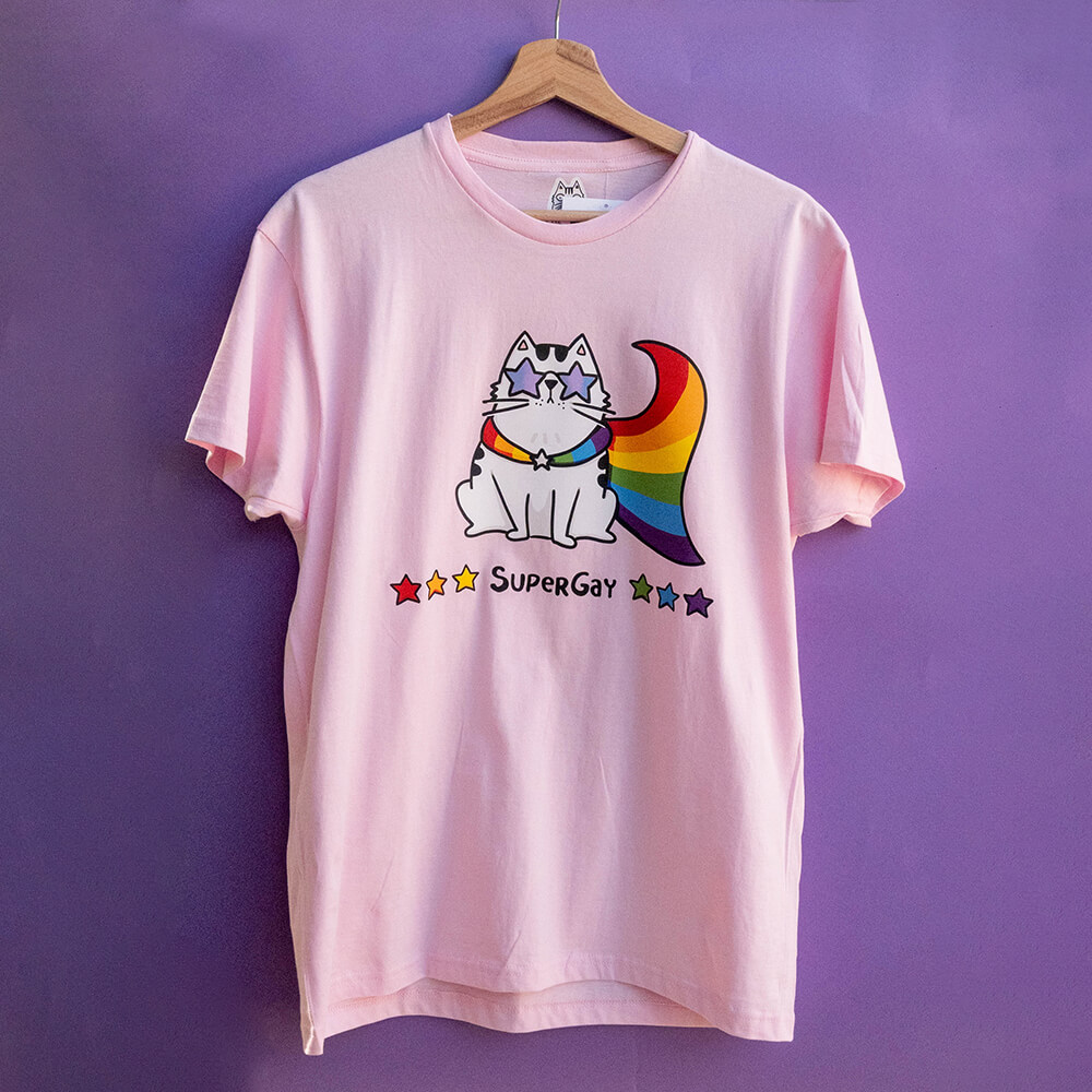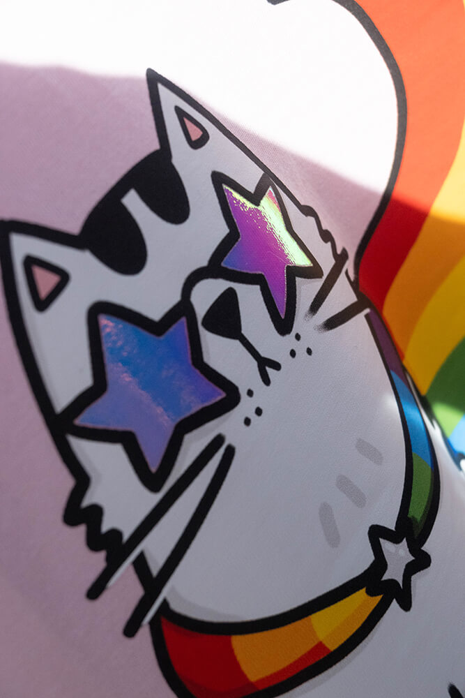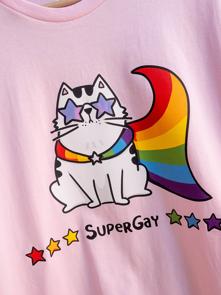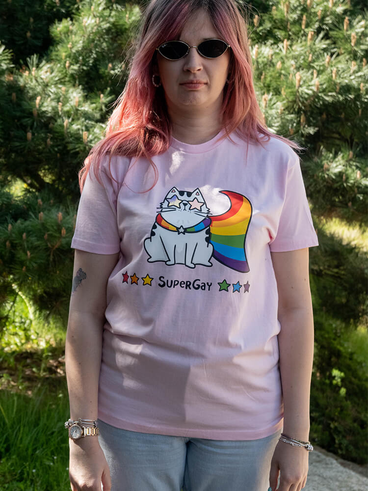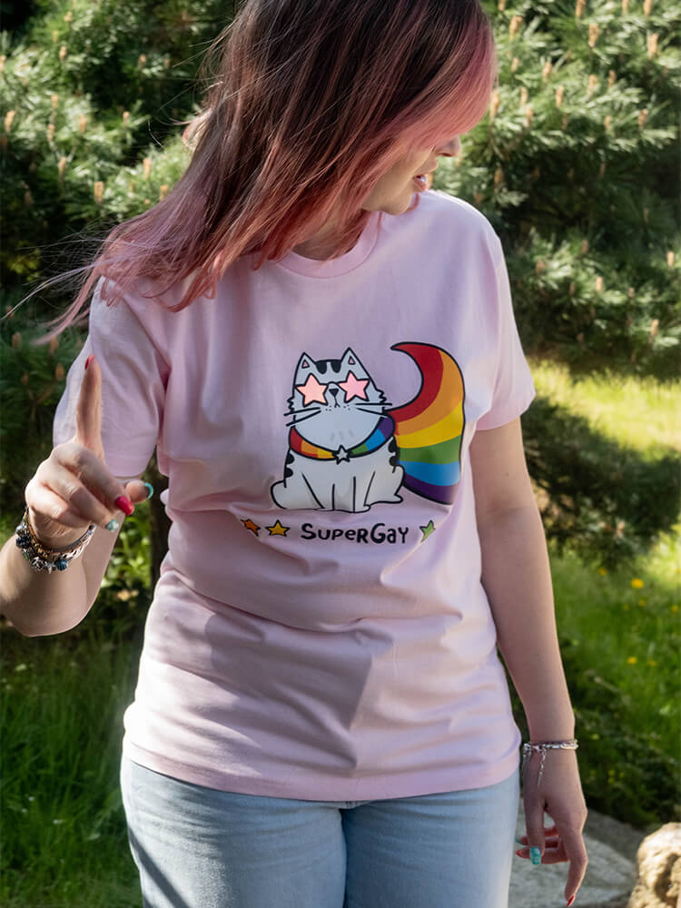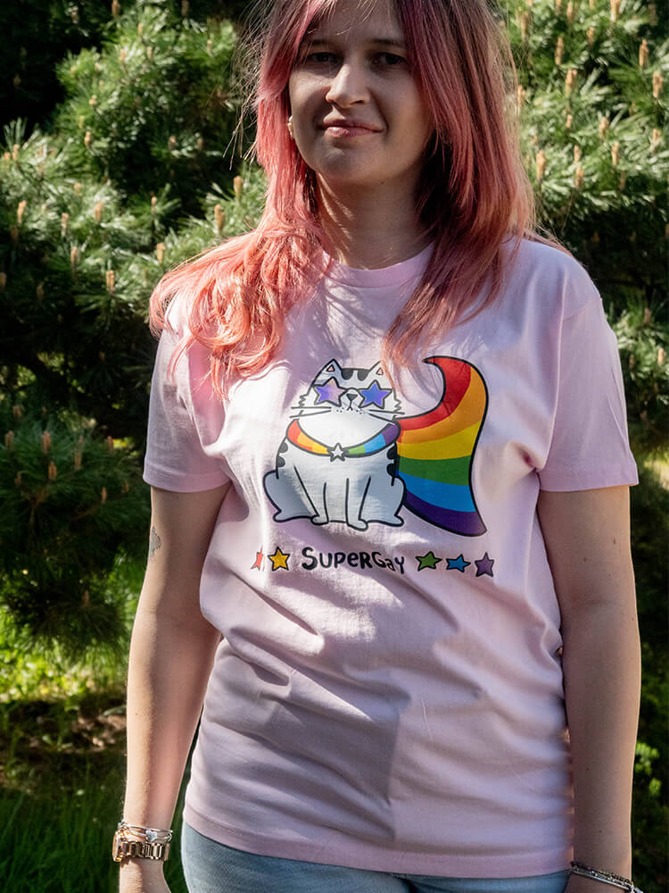 Różowy T-shirt z miękkiej bawełny o gramaturze 190 g/m2. Dłuższy krój i miękki materiał sprawią, że ta kocia koszulka szybko stanie się Twoją ulubioną! Każdy egzemplarz ozdobiony jest autorskim nadrukiem inspirowanym przygodami Pana Kota Szczepana.