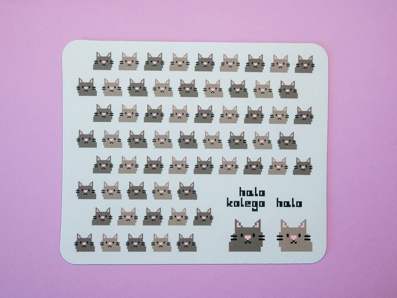 A gdybym Ci powiedziała, że możesz mieć podkładkę pod myszkę z 62 dwoma (tak, jest ich aż tyle!) szarymi kotkami, które z chęcią Ci pomogą? I w dodatku bardzo łatwo zapamiętać ich imiona, bo każdy z nich ma na imię Bambosz! W dodatku dwa największe się ze sobą witają – a może właśnie z Tobą?