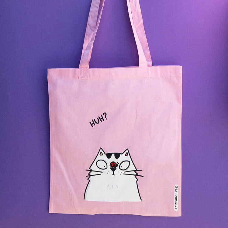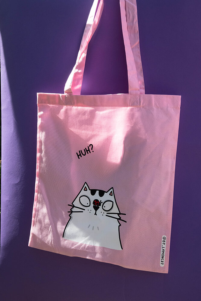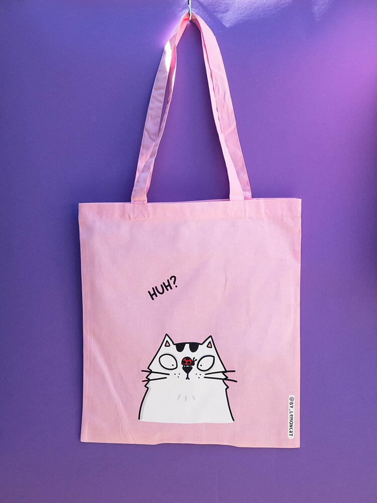 Bawełniana torba z paskami umożliwiającymi wygodne noszenie jej na ramieniu. Nadrukowany na niej kocur bardzo chętnie będzie strzegł włożonych do niej przedmiotów! Rozmiar umożliwia włożenie do niej formatu A4 czy niewielkich, codziennych zakupów.