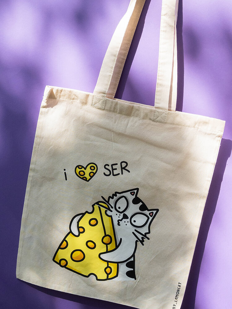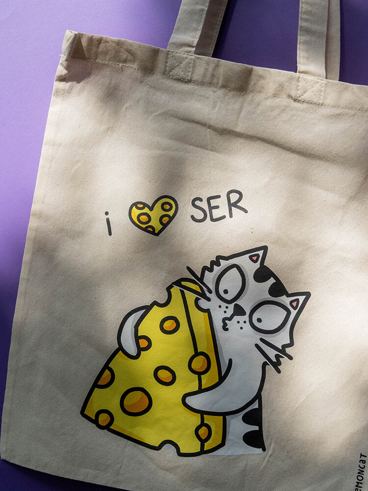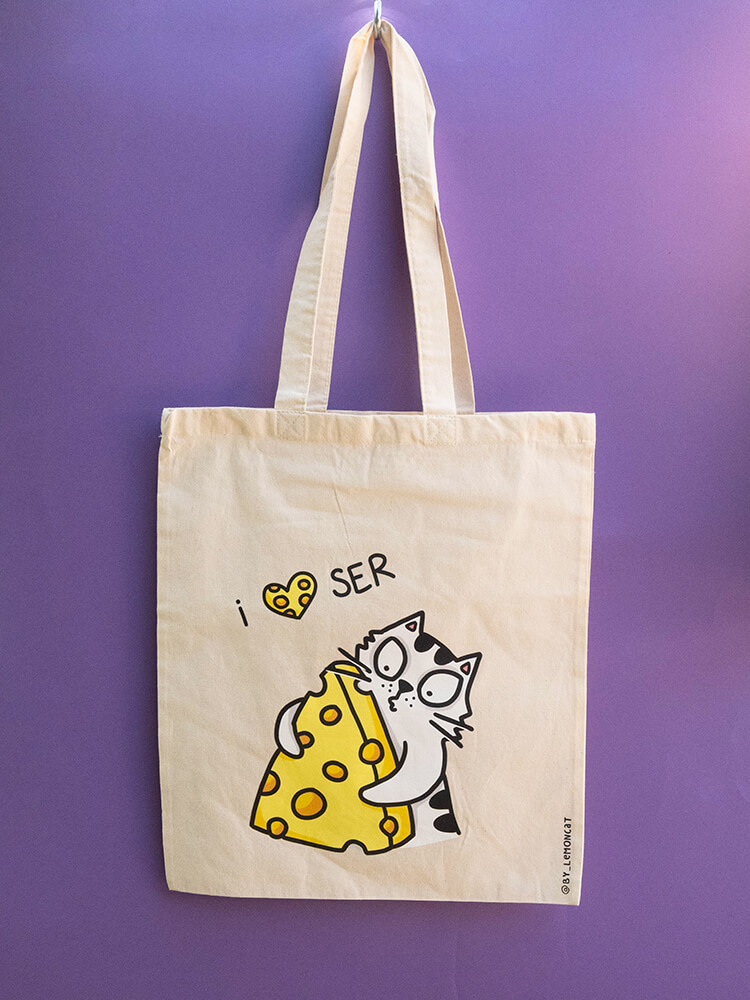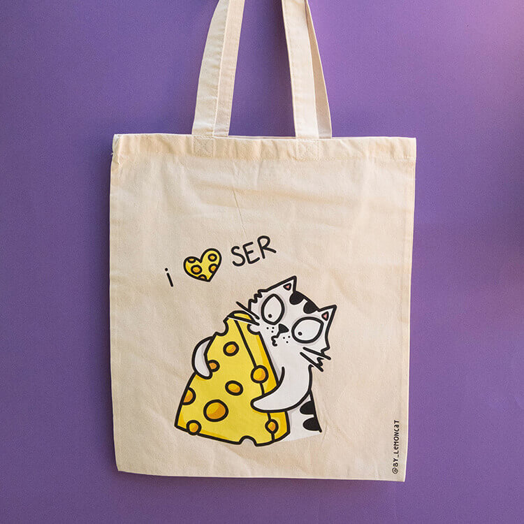 Bawełniana torba z paskami umożliwiającymi wygodne noszenie jej na ramieniu. Nadrukowany na niej kocur bardzo chętnie będzie strzegł włożonych do niej przedmiotów! Rozmiar umożliwia włożenie do niej formatu A4 czy niewielkich, codziennych zakupów.