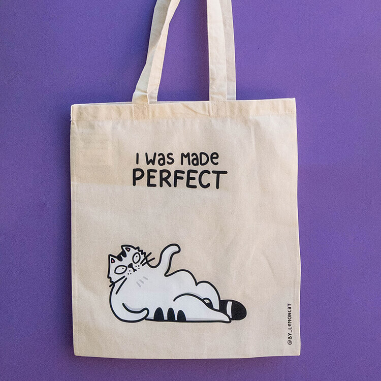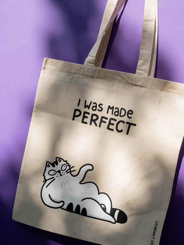 Bawełniana torba z paskami umożliwiającymi wygodne noszenie jej na ramieniu. Nadrukowany na niej kocur bardzo chętnie będzie strzegł włożonych do niej przedmiotów! Rozmiar umożliwia włożenie do niej formatu A4 czy niewielkich, codziennych zakupów.