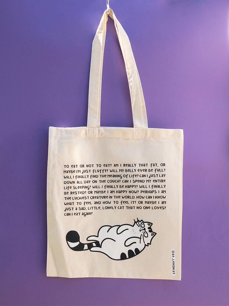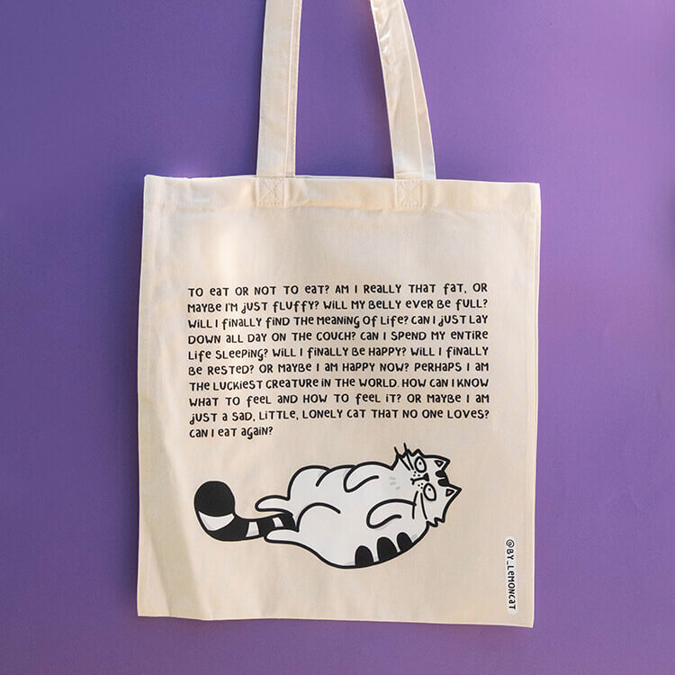 Bawełniana torba z paskami umożliwiającymi wygodne noszenie jej na ramieniu. Nadrukowany na niej kocur bardzo chętnie będzie strzegł włożonych do niej przedmiotów! Rozmiar umożliwia włożenie do niej formatu A4 czy niewielkich, codziennych zakupów.