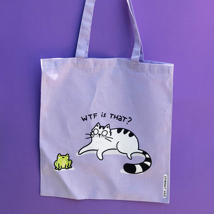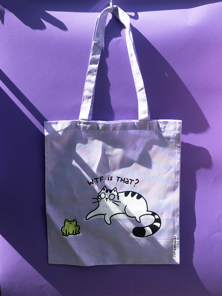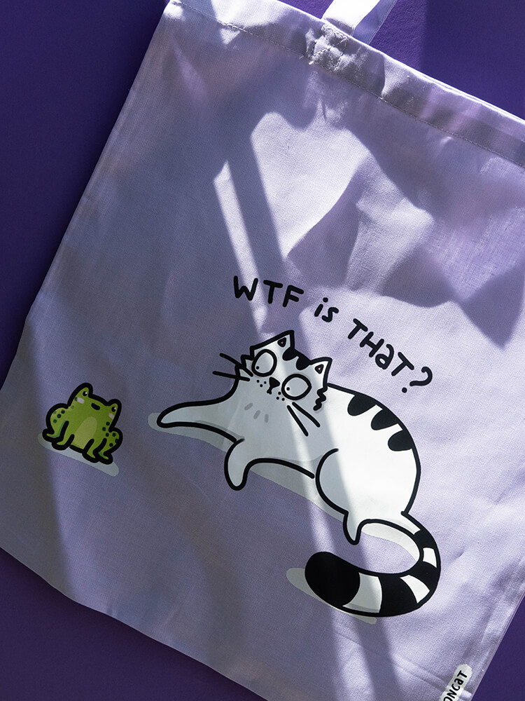 Bawełniana torba z paskami umożliwiającymi wygodne noszenie jej na ramieniu. Nadrukowany na niej kocur bardzo chętnie będzie strzegł włożonych do niej przedmiotów! Rozmiar umożliwia włożenie do niej formatu A4 czy niewielkich, codziennych zakupów.