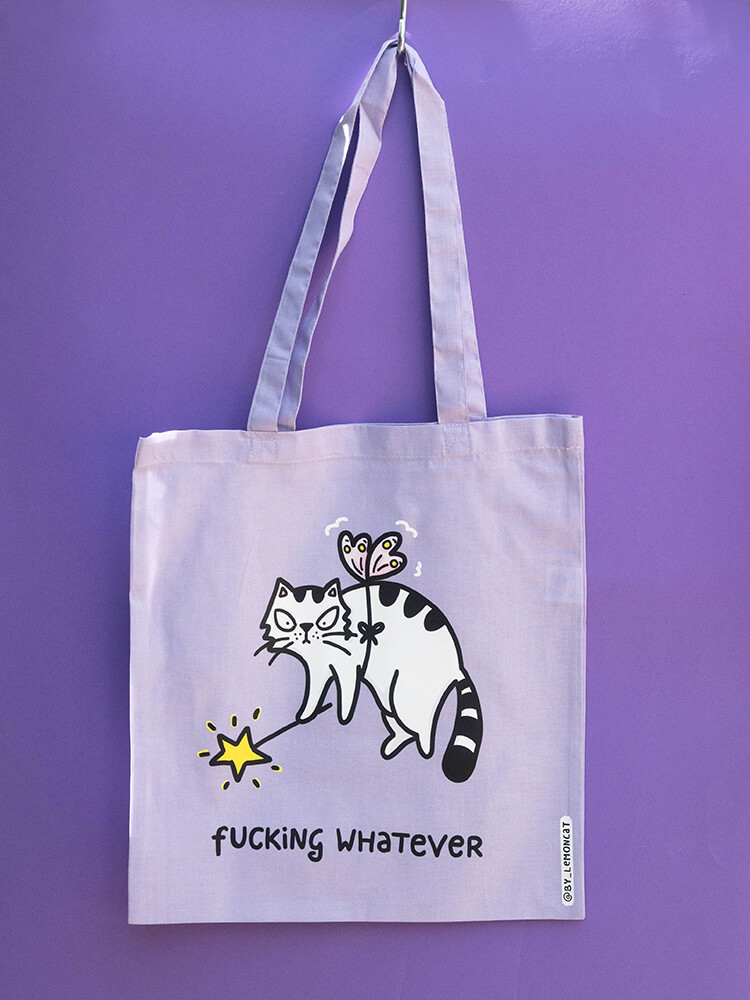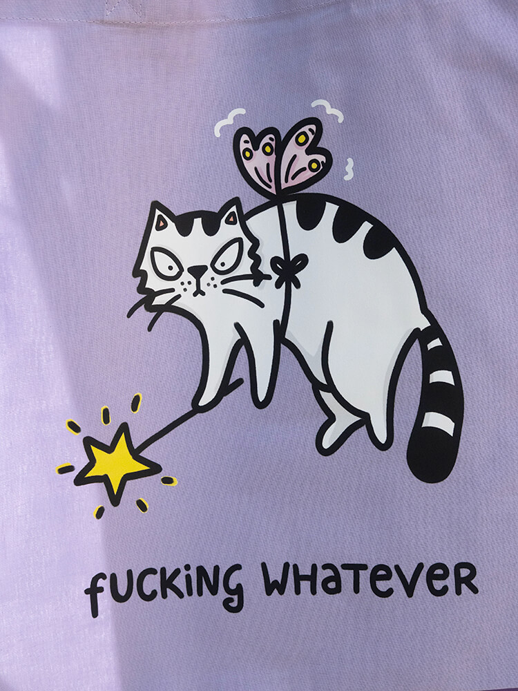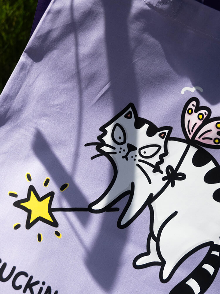 Bawełniana torba z paskami umożliwiającymi wygodne noszenie jej na ramieniu. Nadrukowany na niej kocur bardzo chętnie będzie strzegł włożonych do niej przedmiotów! Rozmiar umożliwia włożenie do niej formatu A4 czy niewielkich, codziennych zakupów.