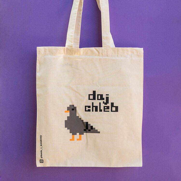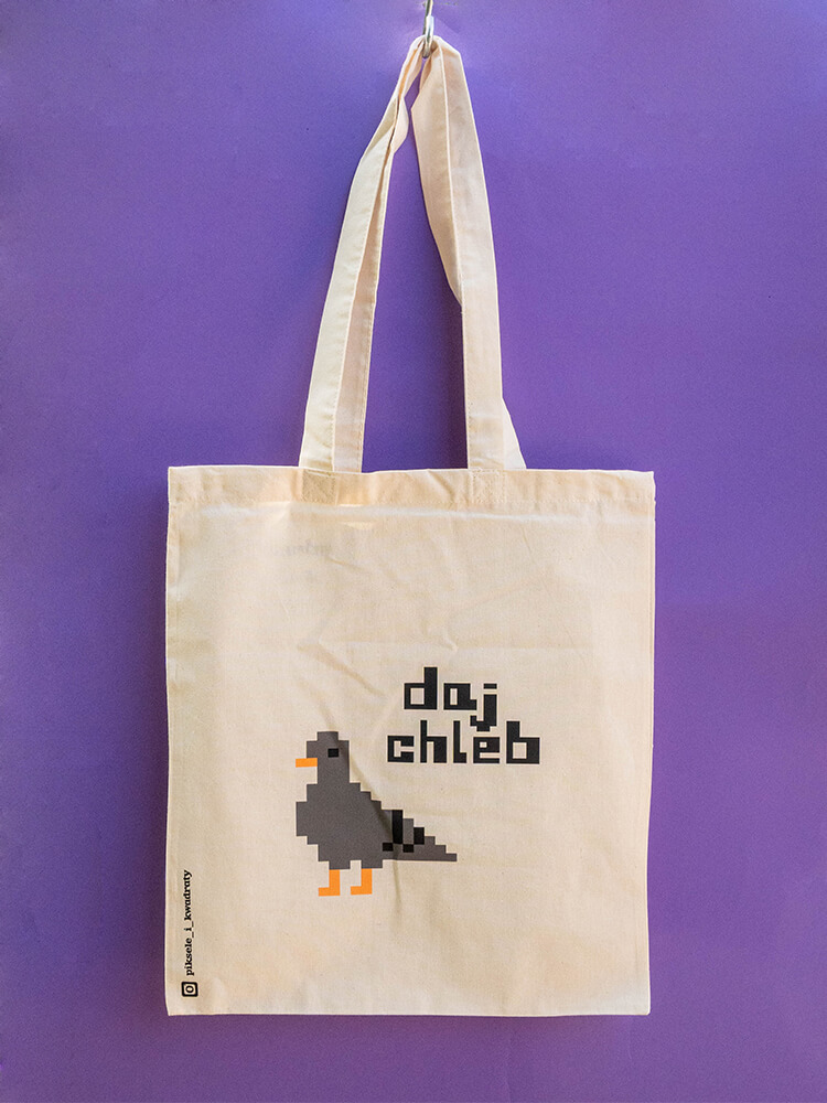 Bawełniana torba z paskami umożliwiającymi wygodne noszenie jej na ramieniu. Nadrukowany na niej gołąb bardzo chętnie będzie strzegł włożonych do niej przedmiotów! Rozmiar umożliwia włożenie do niej formatu A4 czy niewielkich, codziennych zakupów.
