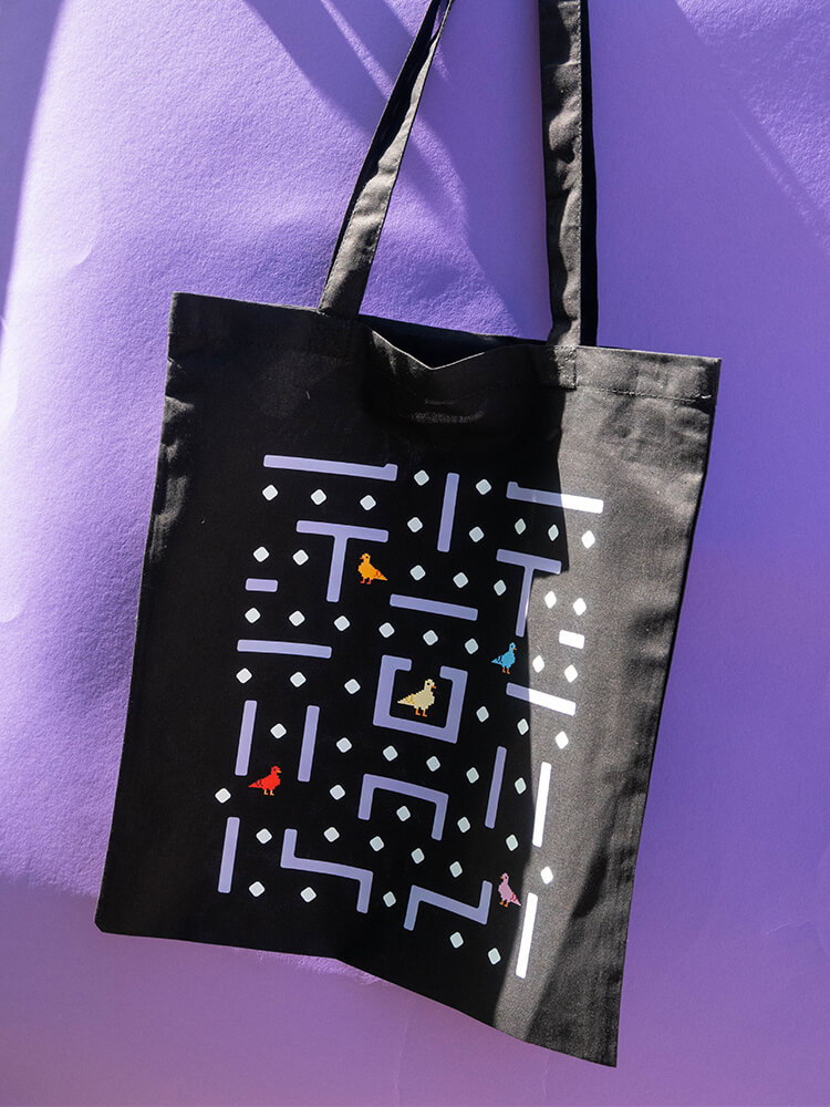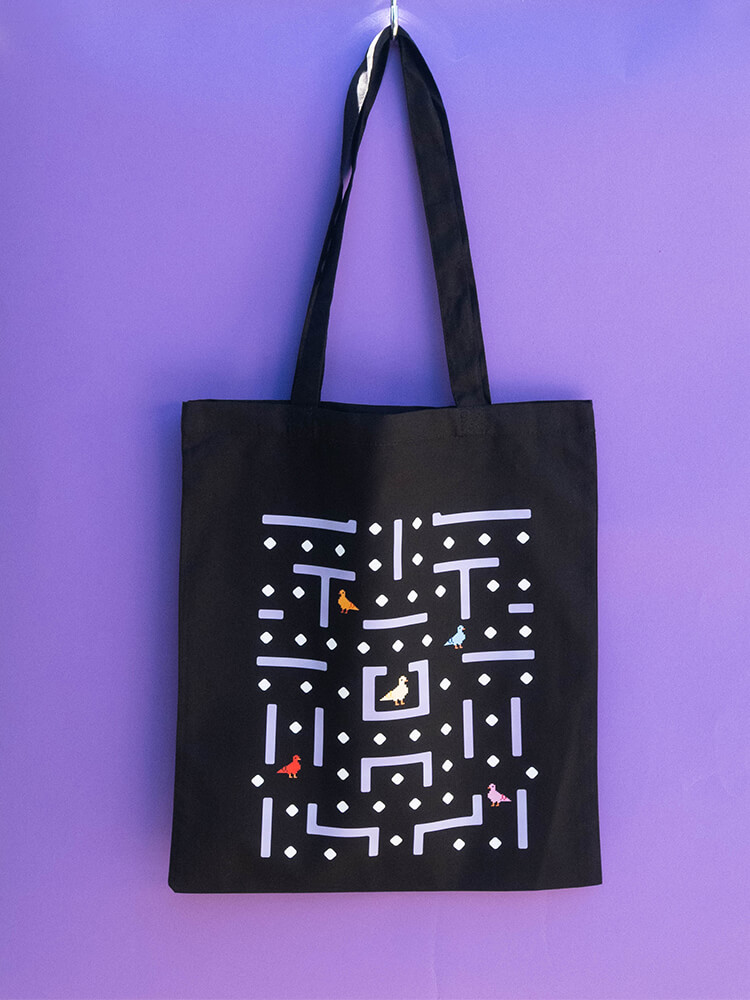 Czarna torba z Typem Gołębiem idealna na zakupy i inne Twoje drobiazgi. Wymiar: ok. 38 x 42 cm, długość uchwytów: ok. 67 cm.