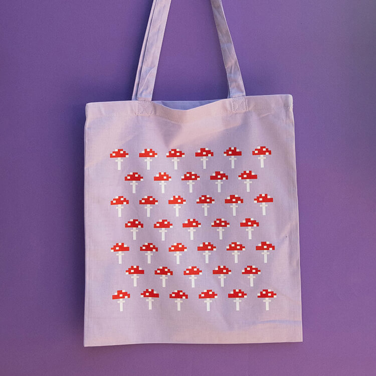 Liliowa torba z Typem Gołębiem idealna na zakupy i inne Twoje drobiazgi. Wymiar: ok. 38 x 42 cm, długość uchwytów: ok. 67 cm.
