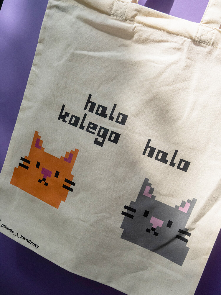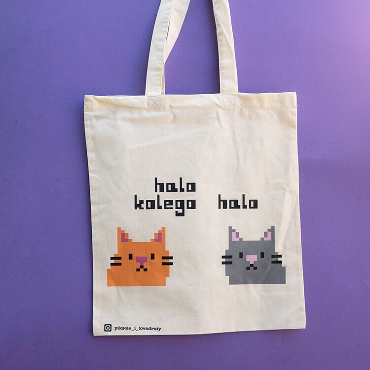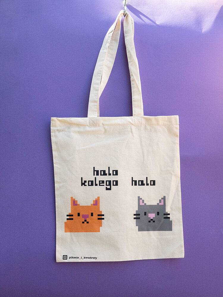 Bawełniana torba z paskami umożliwiającymi wygodne noszenie jej na ramieniu. Nadrukowany na niej kocur bardzo chętnie będzie strzegł włożonych do niej przedmiotów! Rozmiar umożliwia włożenie do niej formatu A4 czy niewielkich, codziennych zakupów.