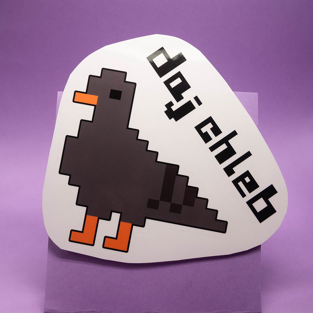 Naklejka z Typem Gołębiem, który wciąż wierzy, że gołębie mogą jeść chleb. A ponieważ nikt mu tego chleba nie daje, postanowił wziąć sprawy we własne skrzydełka. To, czy uda mu się przemierzyć cały świat, zależy teraz od Ciebie! Foliową naklejkę możesz nakleić na swój samochód, żeby Gołąb podróżował razem z Tobą. Albo przyklej ją na laptopa – Typ Gołąb będzie wtedy imponował swoją wielkością.