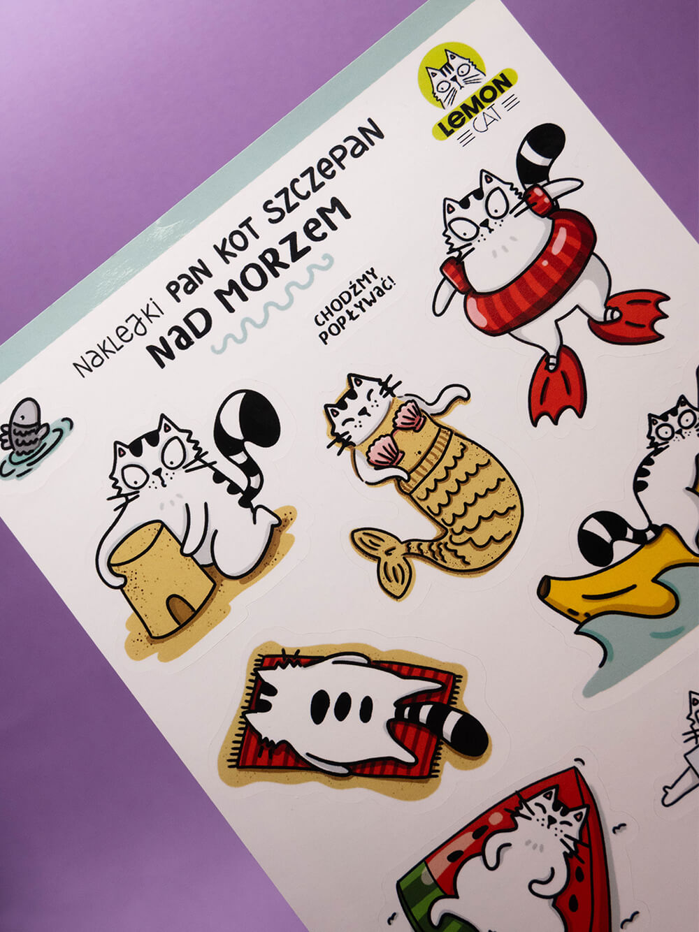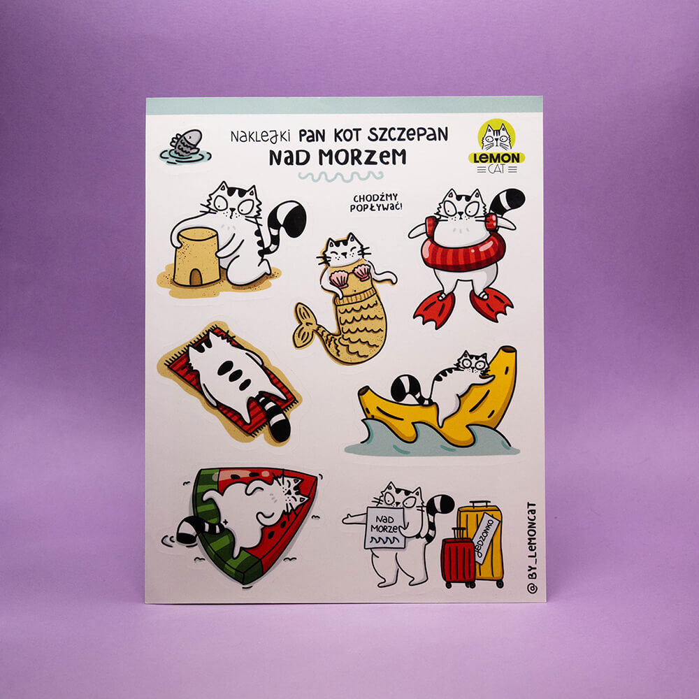 Zestaw naklejek Pan Kot Szczepan nad morzem