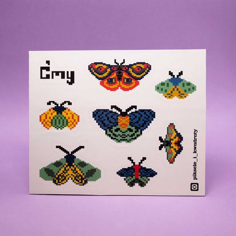 Przepiękny zestaw kolorowych, nocnych motyli, które wylądują na Twoim laptopie, telefonie, zeszytach… Gdzie tylko chcesz! Chociaż niektóre z nich mogą wyglądać jak motyle, nie daj się zwieść – przed Tobą siedem kolorowych ciem. Każda jest inna, każda jest absolutnie wyjątkowa!