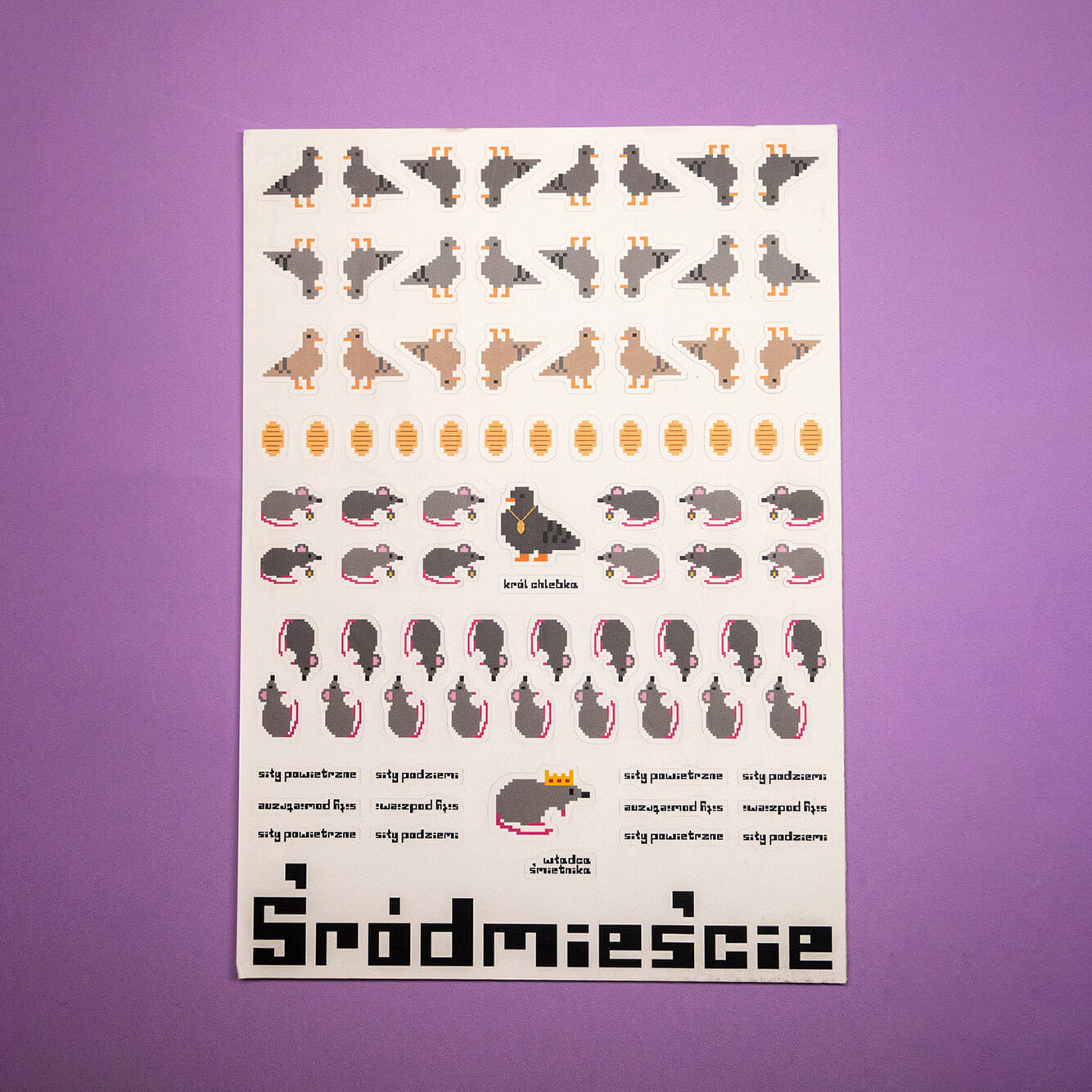 Arkusz naklejek śródmieście – czyli mrowie Szczurów i Gołębi i ich władcy.